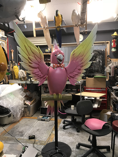 動作概要:スイッチ操作により、羽根の羽ばたき、頭左右動作の他、鳥がおしゃべりします。